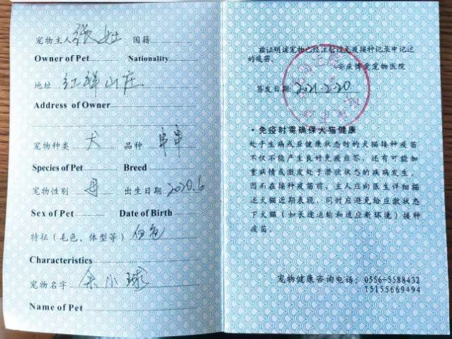 (2) 或外地农业农村部门授权的宠物诊疗机构的防疫证及该机构诊疗许可证明。