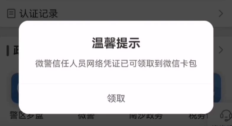 4、领取。人脸识别通过之后,就可以直接领取,可以点击领取到卡包。